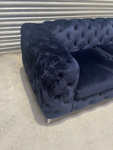 - Upholstered in a beautiful soft touch deep navy velvet